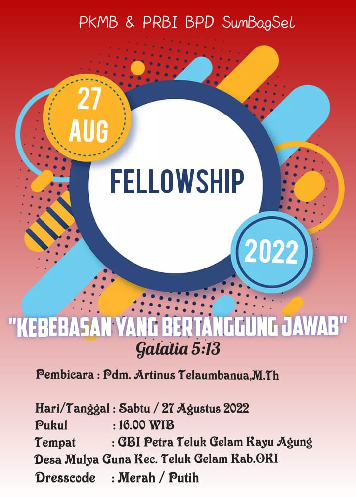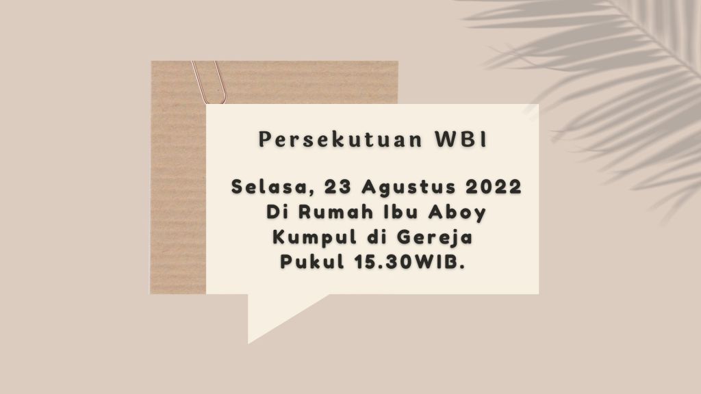 Seluruh Jemaat GBIP diundang hadir, dalam Persekutuan Doa Rabu, 24 Agustus 2022 di GBIP pukul 18.00 WIB. WL. Sdri. Nurita