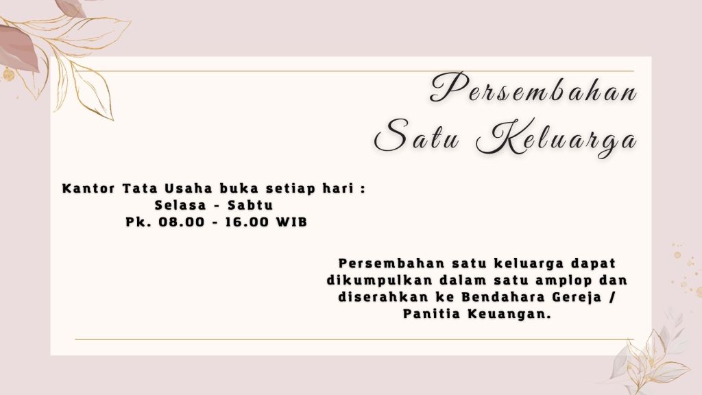 Ibadah Minggu Pagi, 21 Agustus 2022 | Pukul 09.15 WIB |