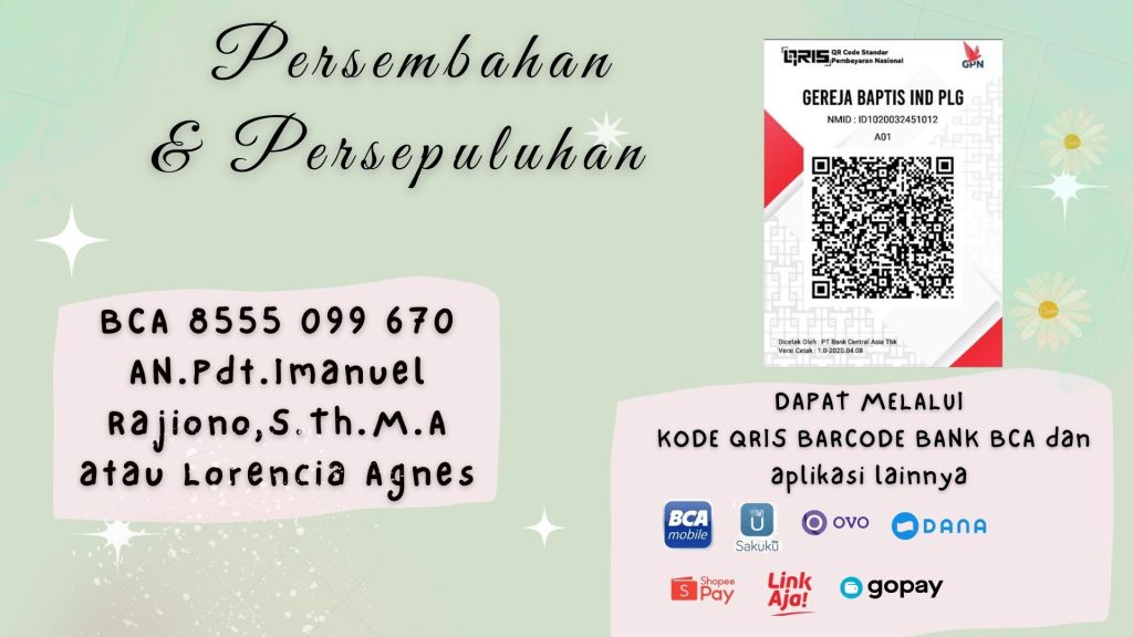 Transaksi Pemberian Persembahan dan Persepuluhan dapat melalui Kode Barcode QRIS dari Bank BCA.