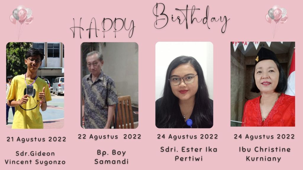 Pdt. Imanuel dan Sidang Jemaat GBIP, mengucapkan Selamat kepada anggota gereja kita yang berulang tahun dalam minggu ini :