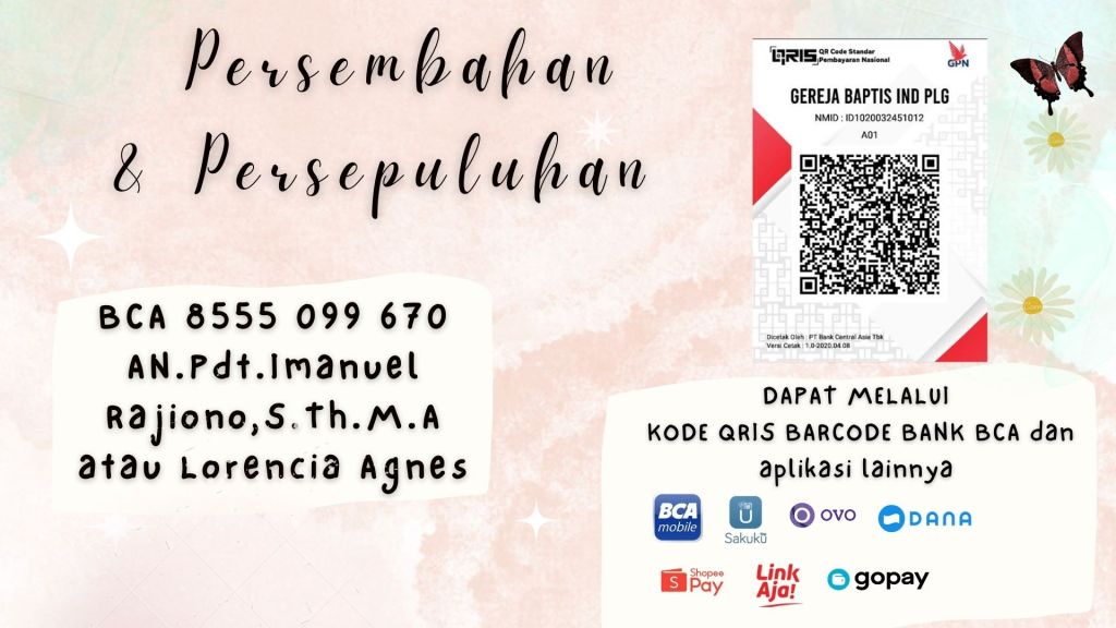 Transaksi Pemberian Persembahan dan Persepuluhan dapat melalui Kode Barcode QRIS dari Bank BCA.