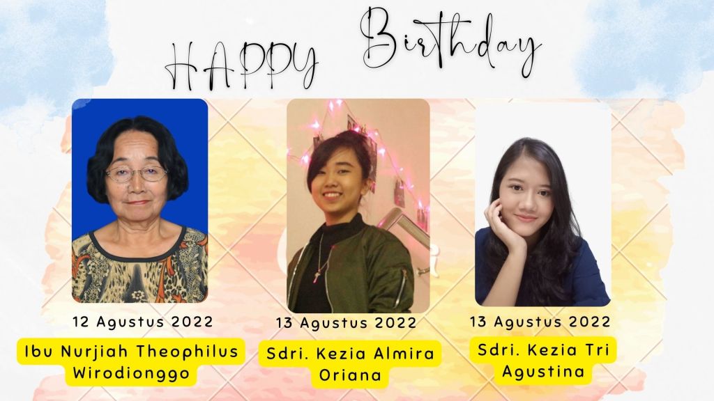 Pdt. Imanuel dan Sidang Jemaat GBIP, mengucapkan Selamat kepada anggota gereja kita yang berulang tahun dalam minggu ini :
