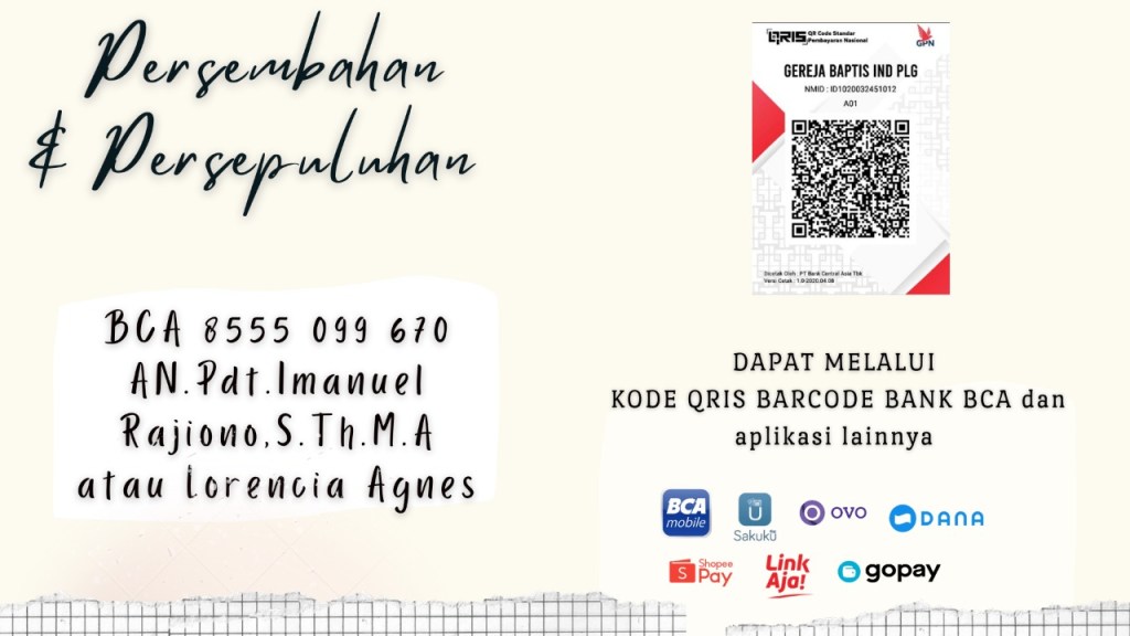 Transaksi Pemberian Persembahan dan Persepuluhan Melalui Kode Barcode QRIS dari Bank BCA.