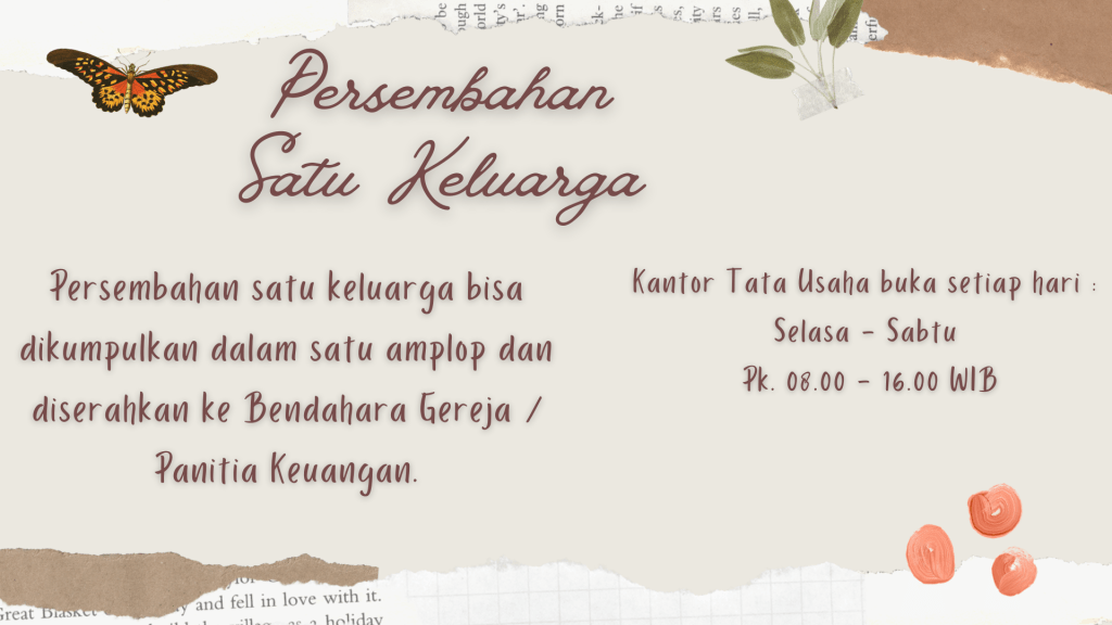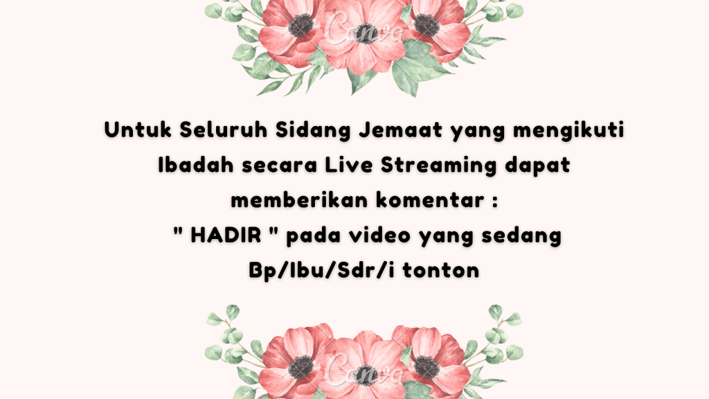 “DOA SERENTAK SELURUH JEMAAT”, Setiap Hari Pukul 21.00 WIB. Pokok – Pokok Doa dipersiapkan oleh Tim Doa dan akan di share di WA Group Gereja.