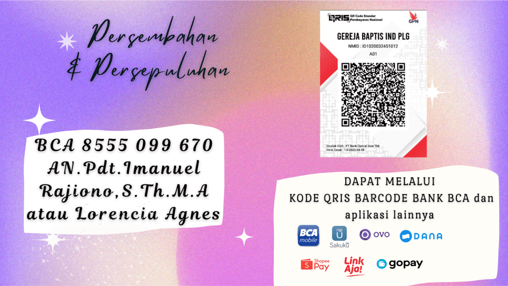 Transaksi Pemberian Persembahan dan Persepuluhan Melalui Kode Barcode QRIS dari Bank BCA.