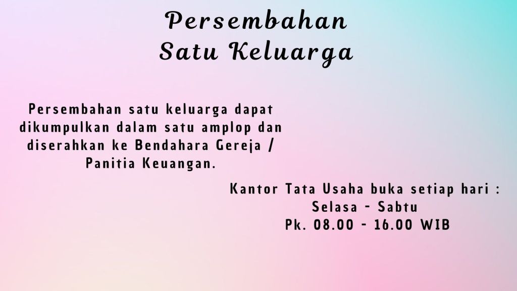 Ibadah Minggu Pagi, 10 Juli 2022 | Pukul 09.15 WIB |
