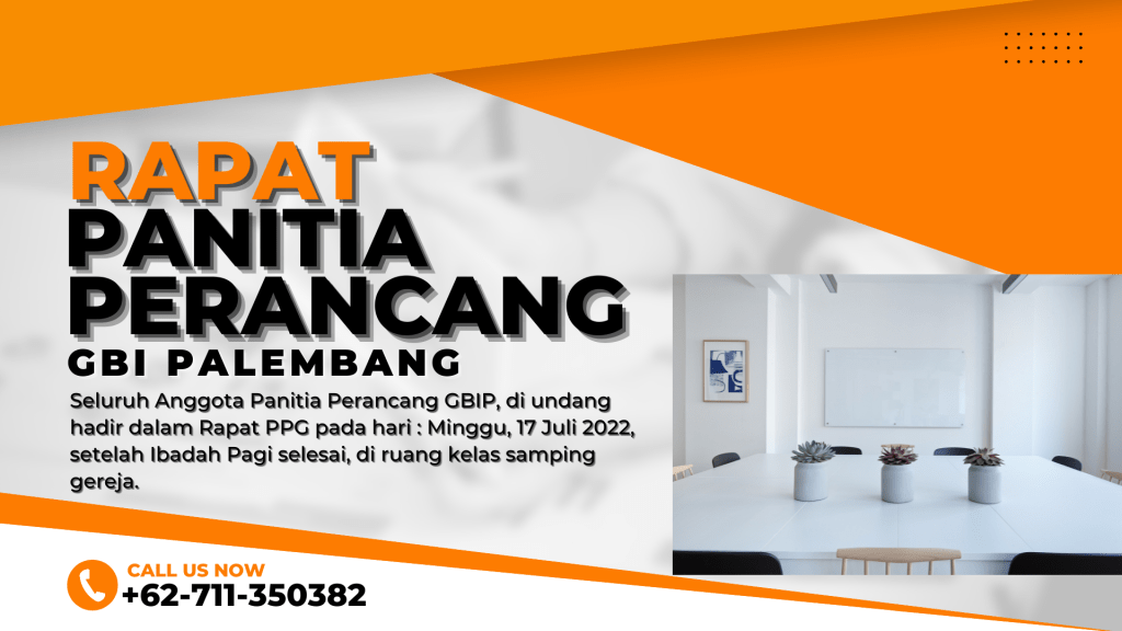 Seluruh anggota Panitia Perancang GBI Palembang, di undang hadir dalam Rapat PPG pada hari Minggu, 17 Juli 2022, setelah Ibadah pagi selesai, di ruang kelas samping gereja. Terima kasih.