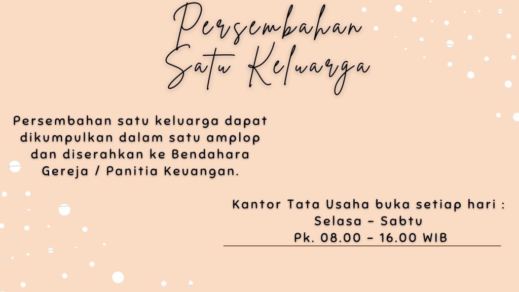Ibadah Minggu Pagi, 17 Juli 2022 | Pukul 09.15 WIB |