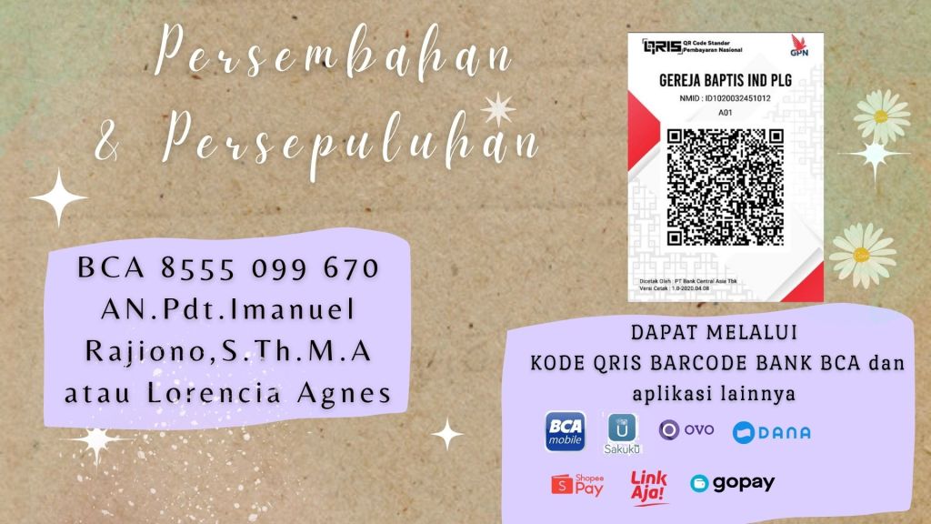 Transaksi Pemberian Persembahan dan Persepuluhan dapat melalui Kode Barcode QRIS dari Bank BCA.