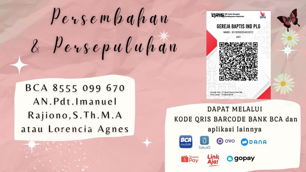 Transaksi Pemberian Persembahan dan Persepuluhan dapat melalui Kode Barcode QRIS dari Bank BCA.