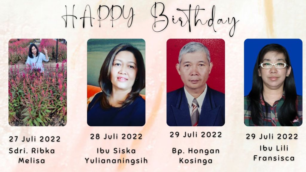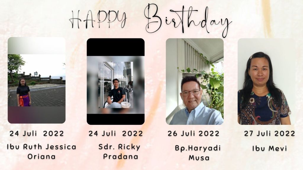 Pdt. Imanuel dan Sidang Jemaat GBIP, mengucapkan Selamat kepada anggota gereja kita yang berulang tahun dalam minggu ini :