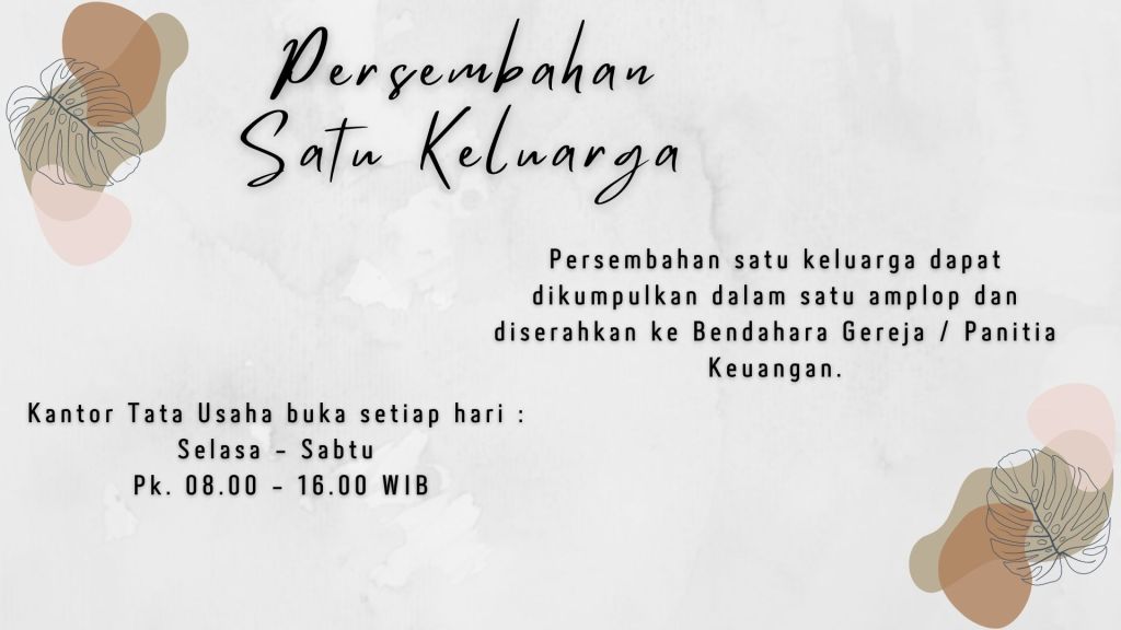 Ibadah Minggu Pagi, 31 Juli 2022 | Pukul 09.15 WIB |
