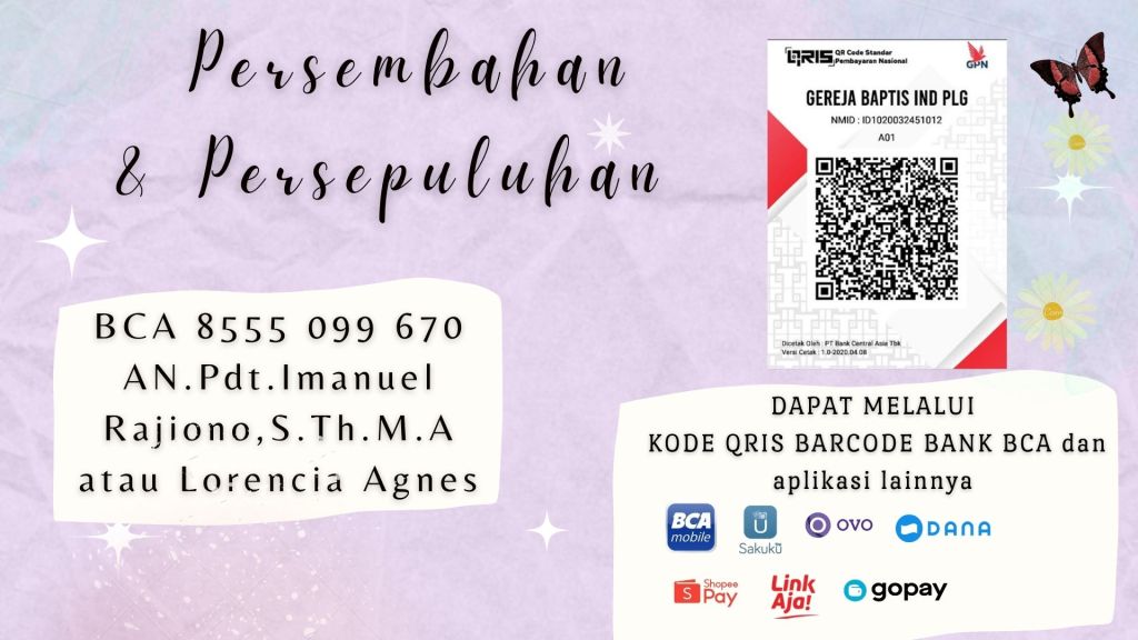 Transaksi Pemberian Persembahan dan Persepuluhan dapat melalui Kode Barcode QRIS dari Bank BCA.