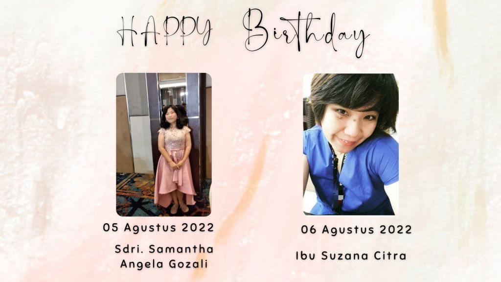 Pdt. Imanuel dan Sidang Jemaat GBIP, mengucapkan Selamat kepada anggota gereja kita yang berulang tahun dalam minggu ini :