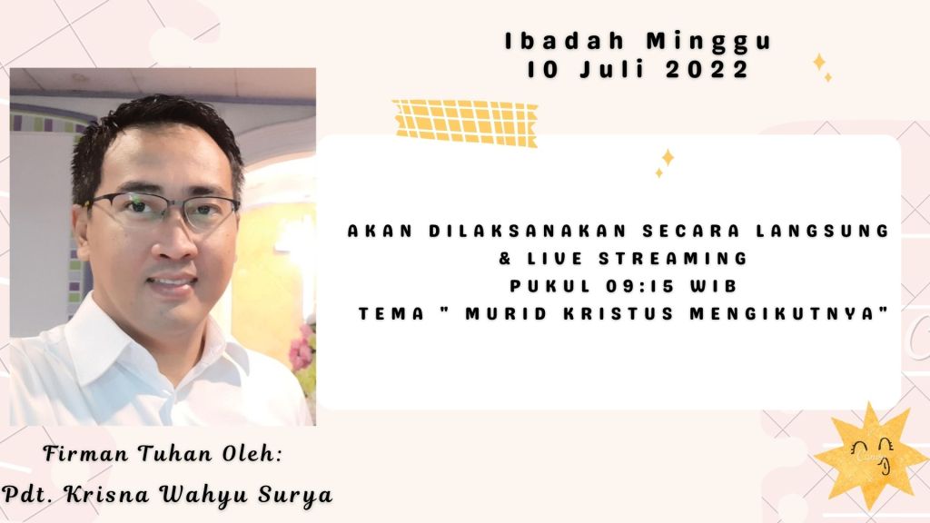 Ibadah Minggu Pagi, 03 Juli 2022 | Pukul 09.15 WIB |