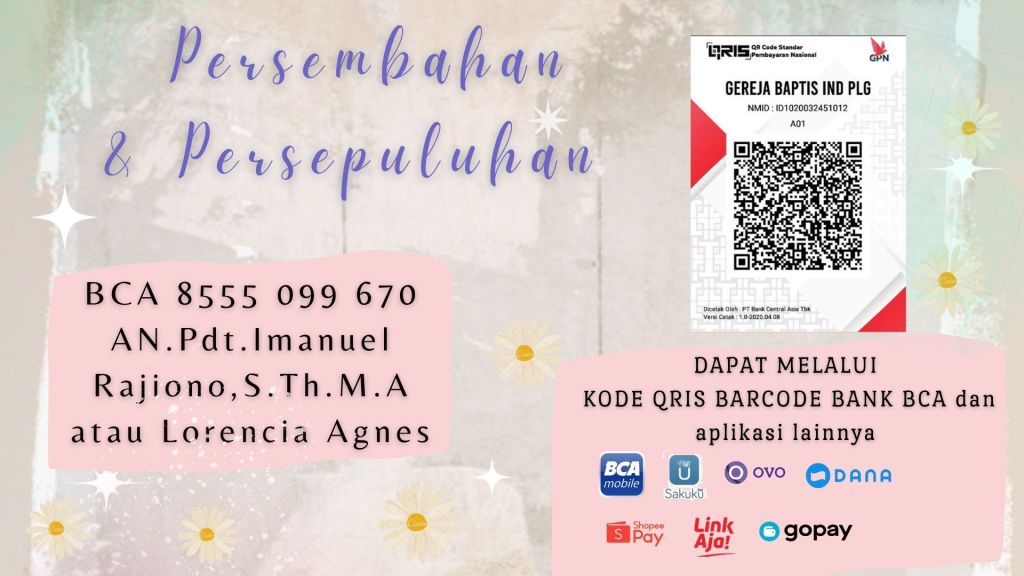 Transaksi Pemberian Persembahan dan Persepuluhan dapat melalui Kode Barcode QRIS dari Bank BCA.