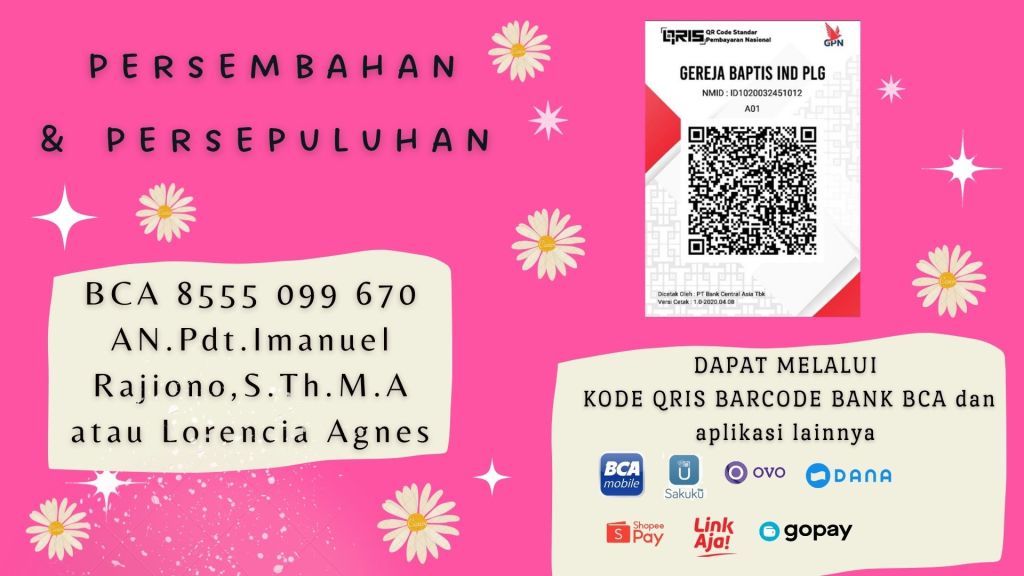 Transaksi Pemberian Persembahan dan Persepuluhan dapat melalui Kode Barcode QRIS dari Bank BCA.