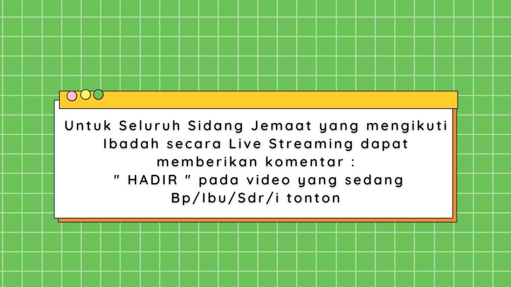 Ibadah Minggu pagi, 12 Juni 2022 | Pukul 09.15 WIB |