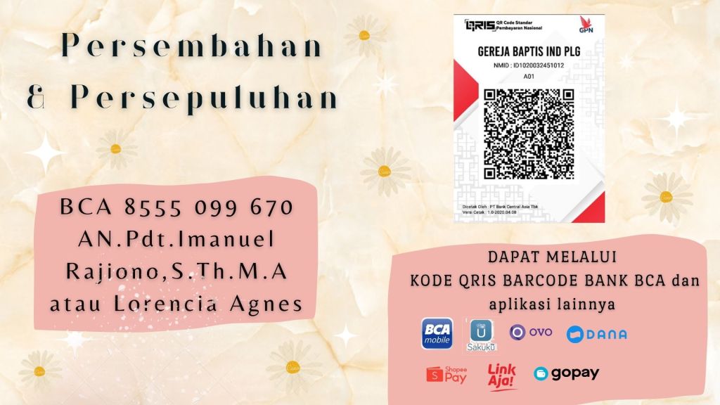 Transaksi Pemberian Persembahan dan Persepuluhan dapat melalui Kode Barcode QRIS dari Bank BCA.
