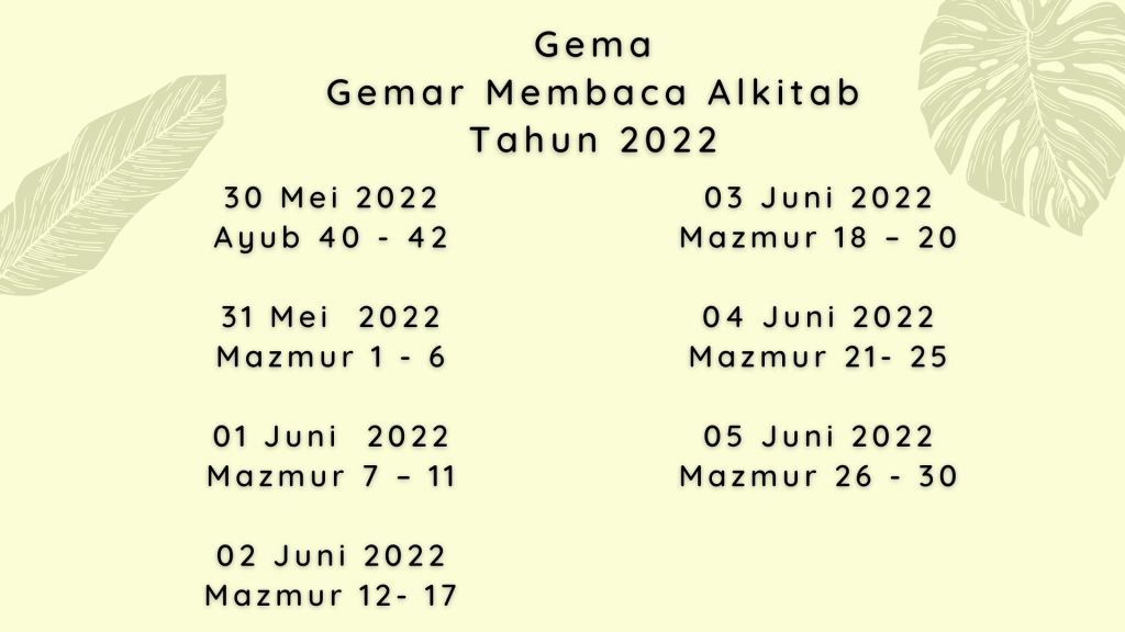GEMA (Gemar Membaca Alkitab) Tahun 2022: