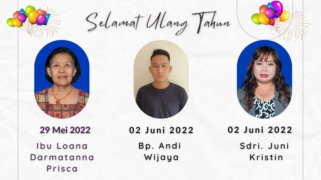 Pdt. Imanuel dan Sidang Jemaat GBIP, mengucapkan Selamat kepada anggota gereja kita yang berulang tahun dalam minggu ini :