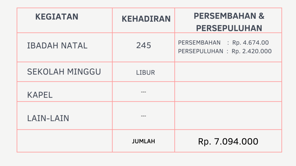 LAPORAN KEHADIRAN & KEUANGAN MINGGU LALU | 25 DES 2022 |