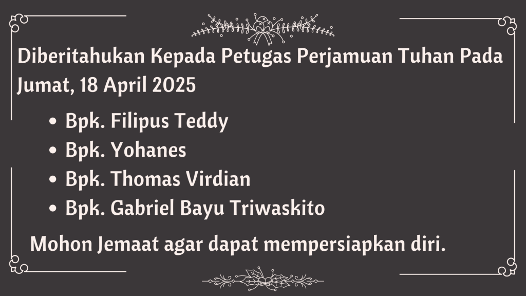 | IBADAH DOA RABU 9 APRIL 2025 | 28 | ||