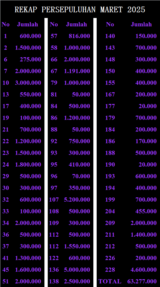 | IBADAH PAGI 6 APRIL 2025 | 167 | PERSEMBAHAN | 2.880.000 |