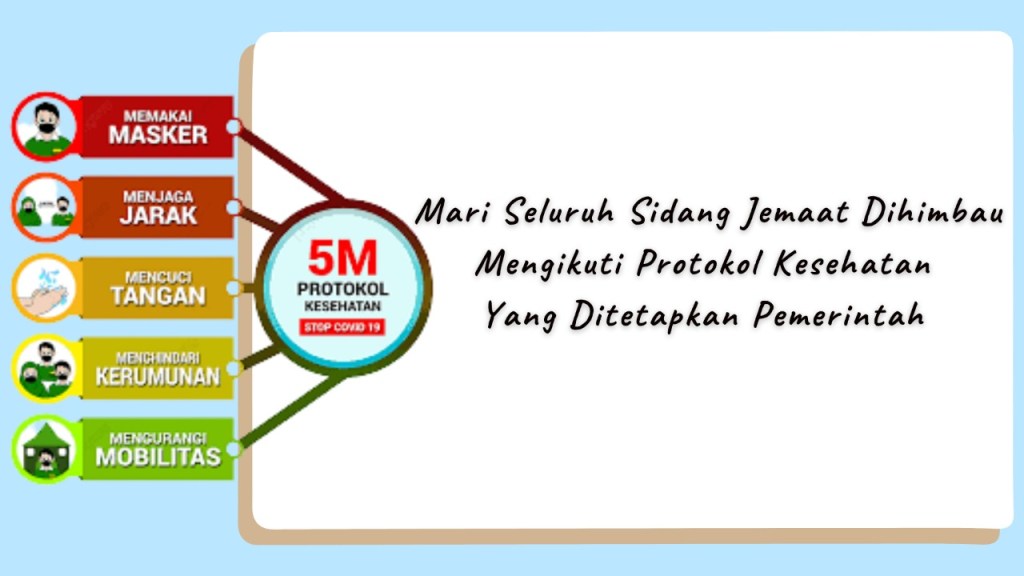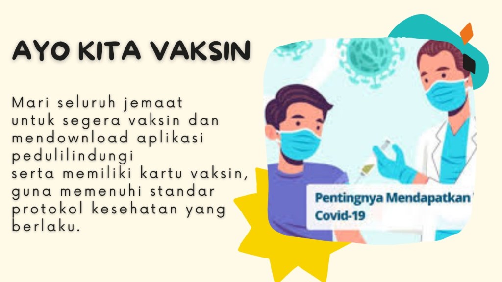 Mengingatkan bagi seluruh Sidang Jemaat untuk dapat segera Vaksin dan download aplikasi Pedulilindungi serta memiliki sertifikat vaksin guna memenuhi standar prokes yang berlaku.