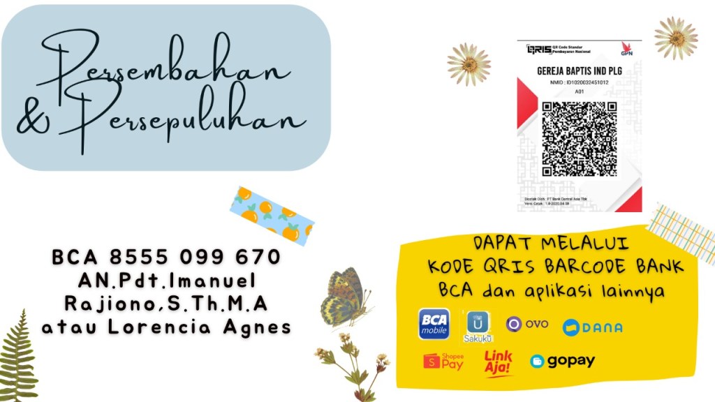 Transaksi pemberian Persembahan dan Persepuluhan dapat juga melalui kode barcode QRIS dari Bank BCA.