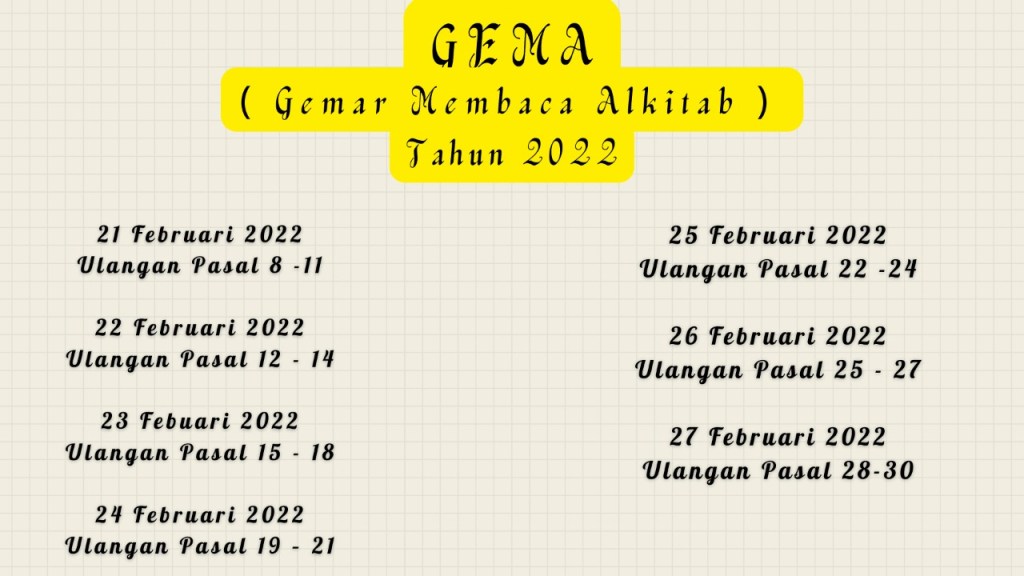 G E M A (GEMAR MEMBACA ALKITAB) TAHUN 2022