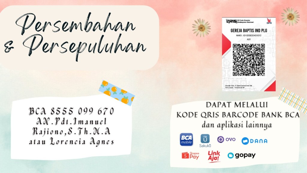 Transaksi pemberian Persembahan dan Persepuluhan dapat juga melalui kode barcode QRIS dari Bank BCA.