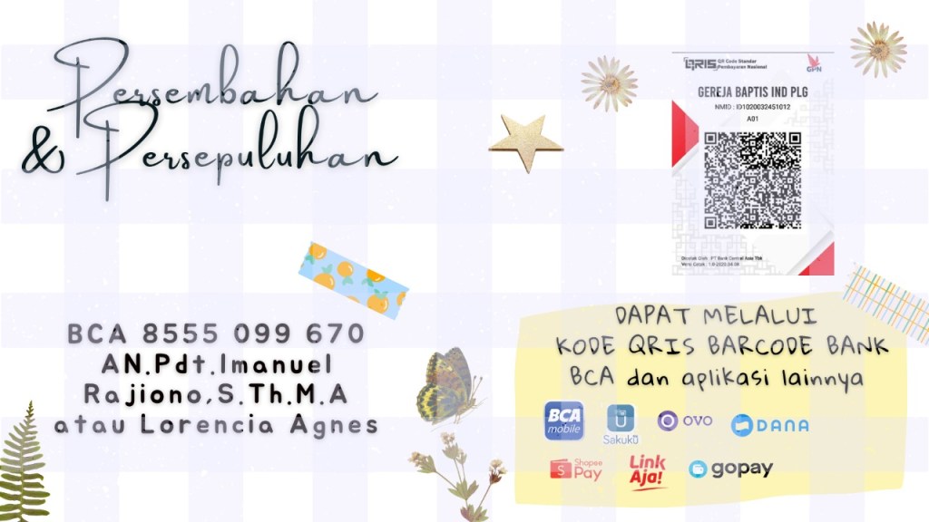 Transaksi pemberian Persembahan dan Persepuluhan dapat juga melalui kode barcode QRIS dari Bank BCA.