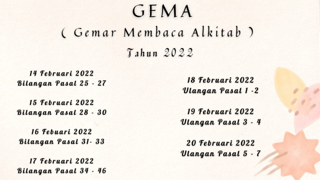 G E M A (GEMAR MEMBACA ALKITAB) TAHUN 2022