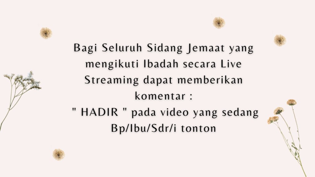 Firman Tuhan akan disampaikan oleh Pdt. Imanuel Rajiono, S.Th.,M.A.