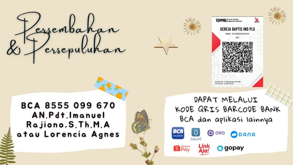 Transaksi pemberian Persembahan dan Persepuluhan dapat juga melalui kode barcode QRIS dari Bank BCA.