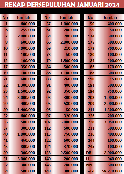 | IBADAH MINGGU 4 FEBRUARI 2024 | ā165 | āāāāāāāPERSEMBAHAN | ā4.108.000 |
