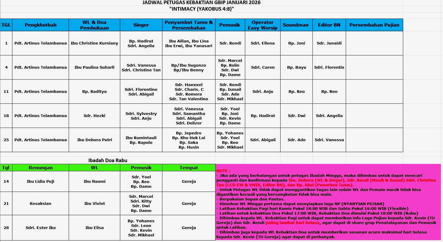 | IBADAH MINGGU PAGI 4 JANUARI 2026 | 170 | PERSEMBAHAN | 4.009.000 |