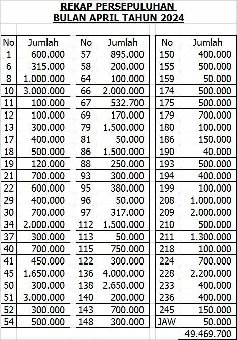 | SEKOLAH MINGGU | 148 | 781.000 | |