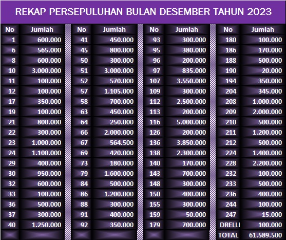 | IBADAH MINGGU 7 JANUARI 2024 | 187 | PERSEMBAHAN | 3.631.500 |