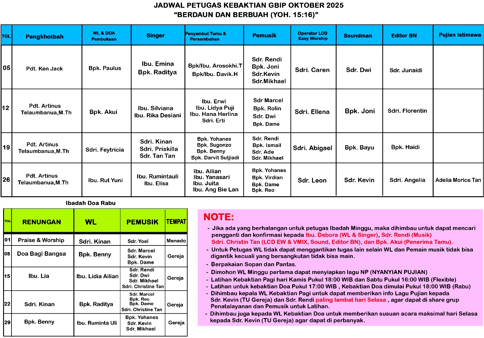 | IBADAH DOA RABU 15 OKTOBER 2025 | 25 | – | |
