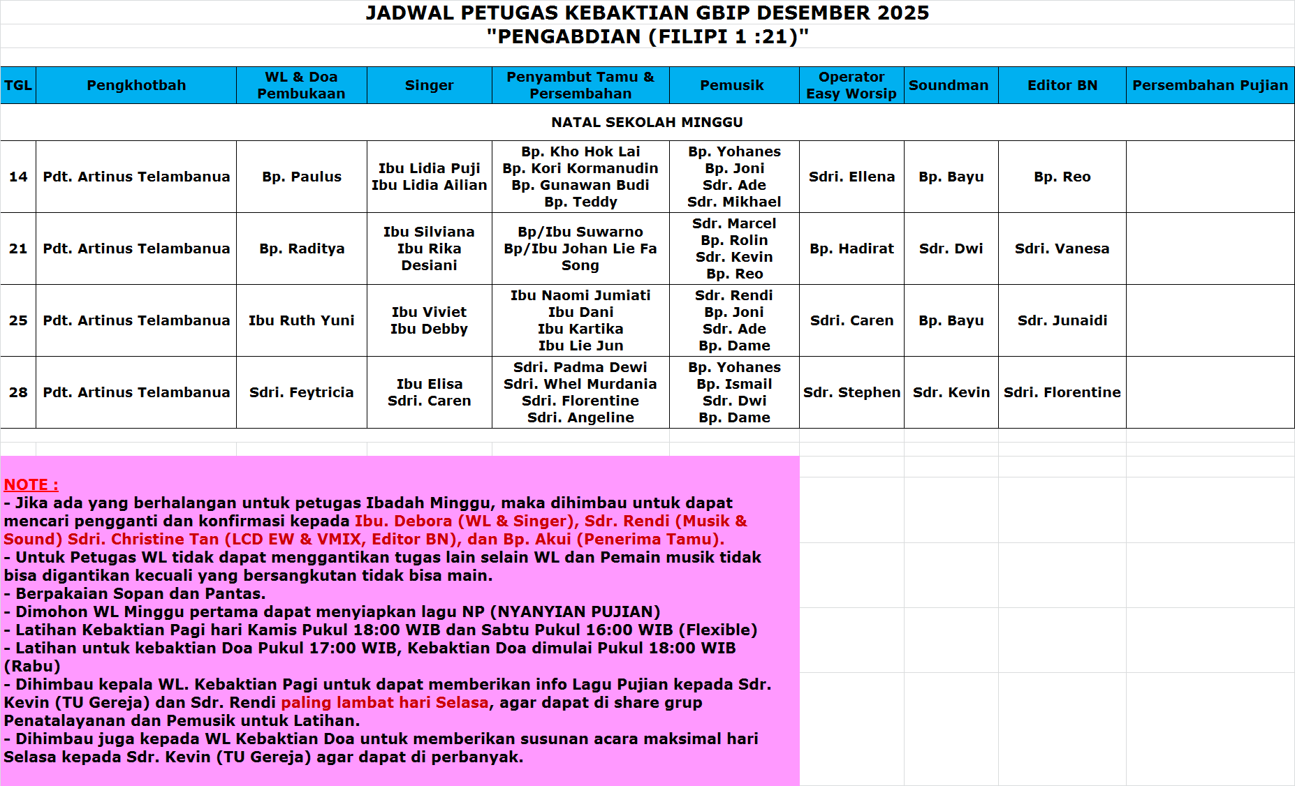 | IBADAH NATAL UMUM 14 DESEMBER 2025 | 275 | PERSEMBAHAN | 3.407.500 |