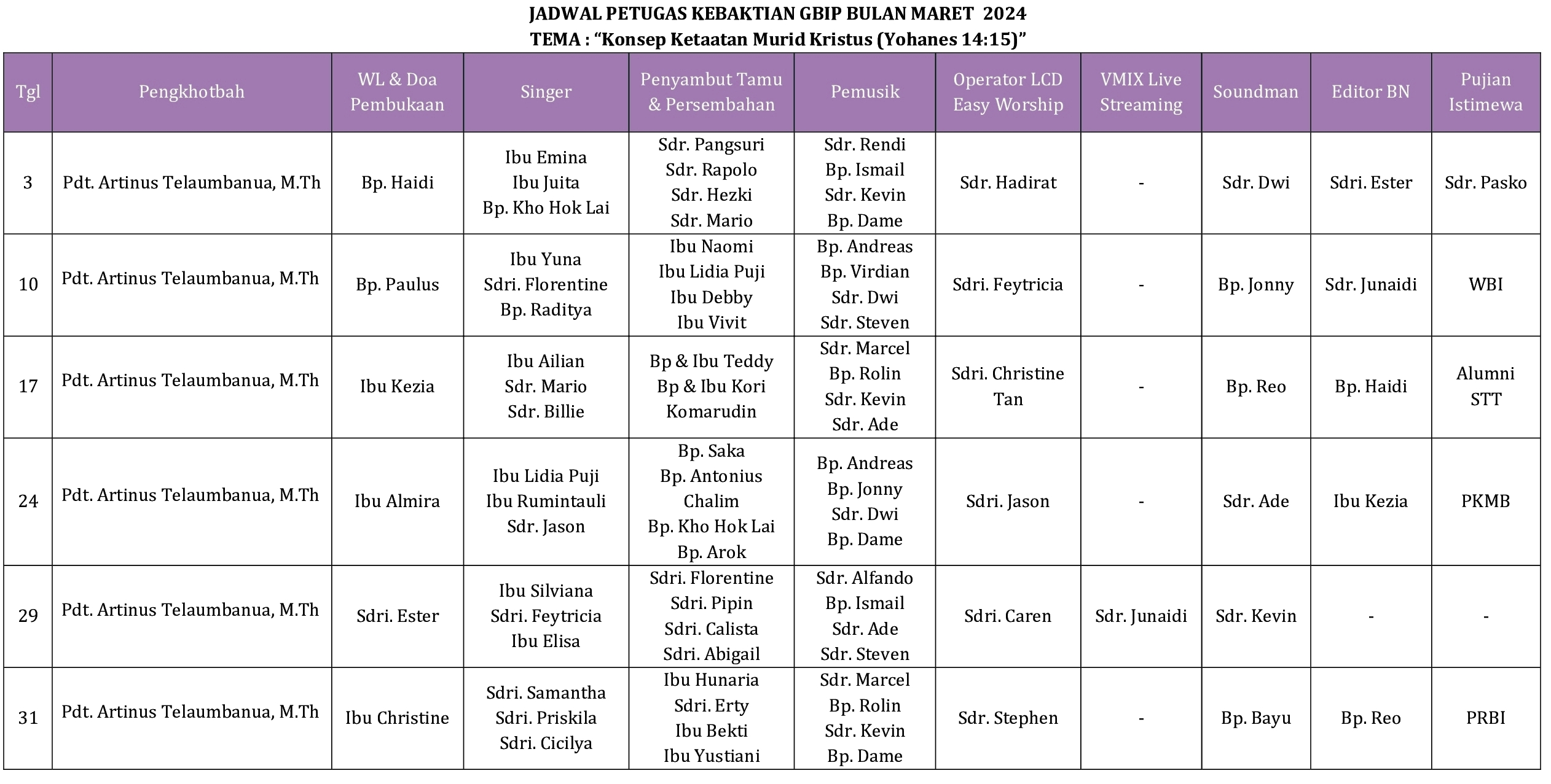 - Pdt. Artinus Telaumbanua, M.Th.