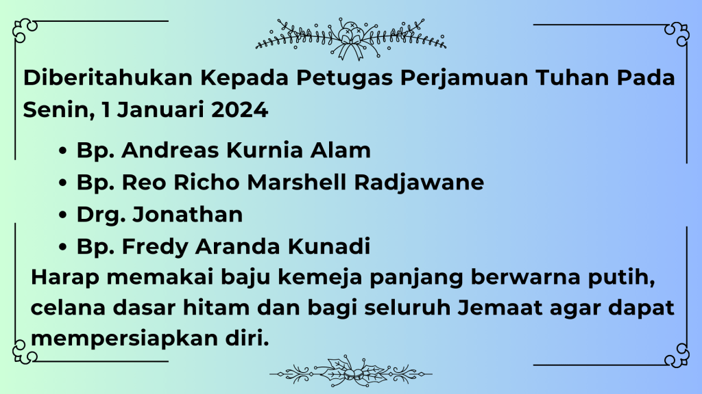 | IBADAH PAGI (24 DESEMBER 2023) | 161 | PERSEMBAHAN | 3.333.000 |