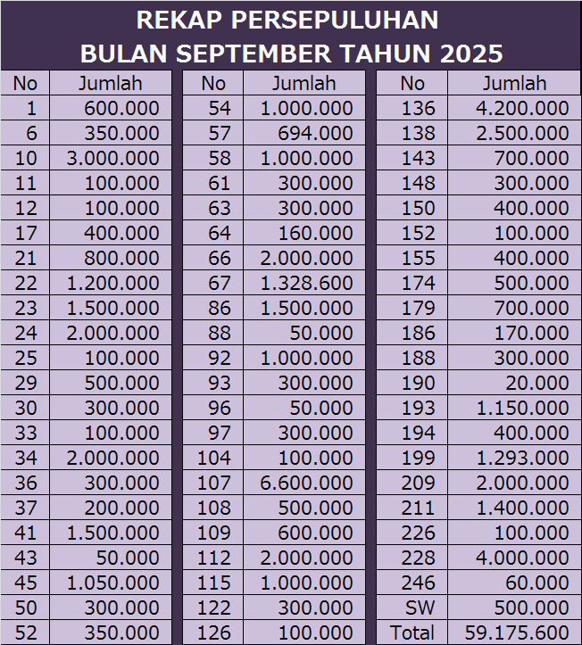 | PERSEKUTUAN PRIA 26 SEPTEMBER 2025 | 25 | 237.000 | |