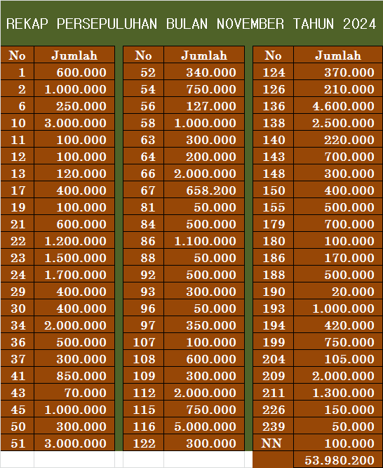 | SEKOLAH MINGGU 1 DESEMBER 2024 | 157 | 798.000 | |