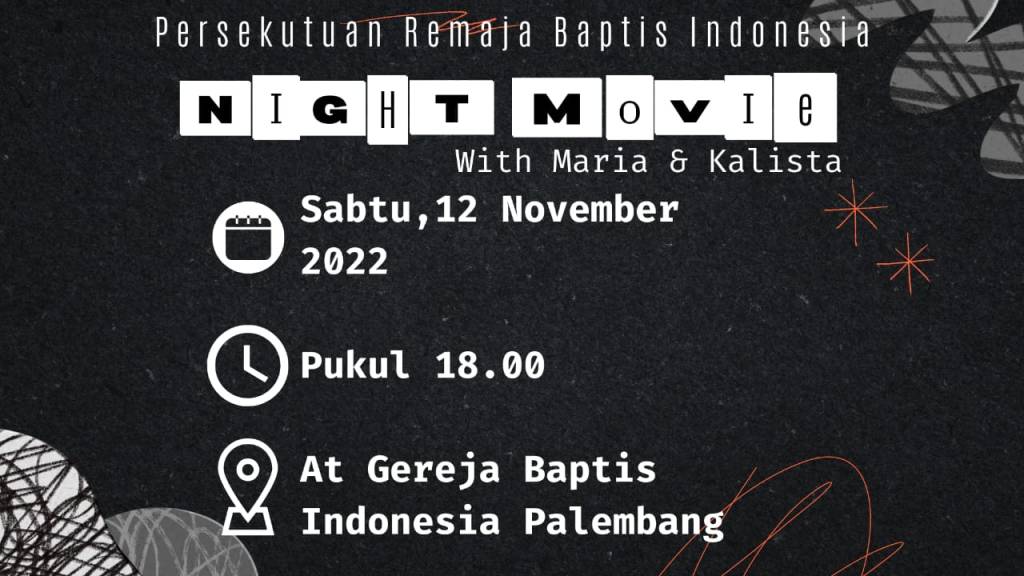 Seluruh Kaum Remaja diundang hadir dalam Persekutuan PRBI Sabtu, 12 November 2022 dengan acara “ Night Movie” di GBIP pukul 18.00 WIB.