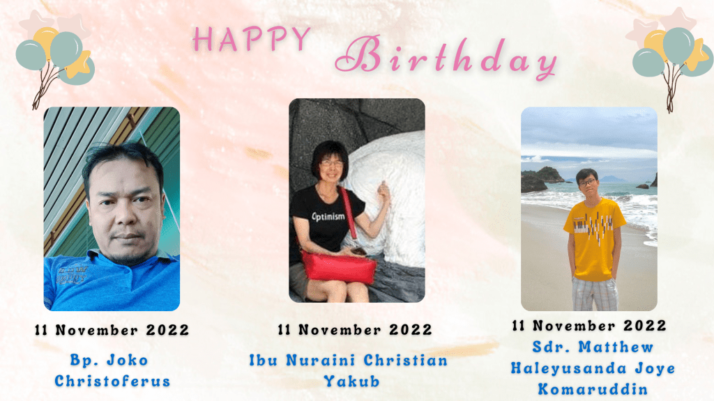 Pdt. Imanuel dan Sidang Jemaat GBIP, mengucapkan Selamat kepada anggota gereja kita yang berulang tahun dalam minggu ini :