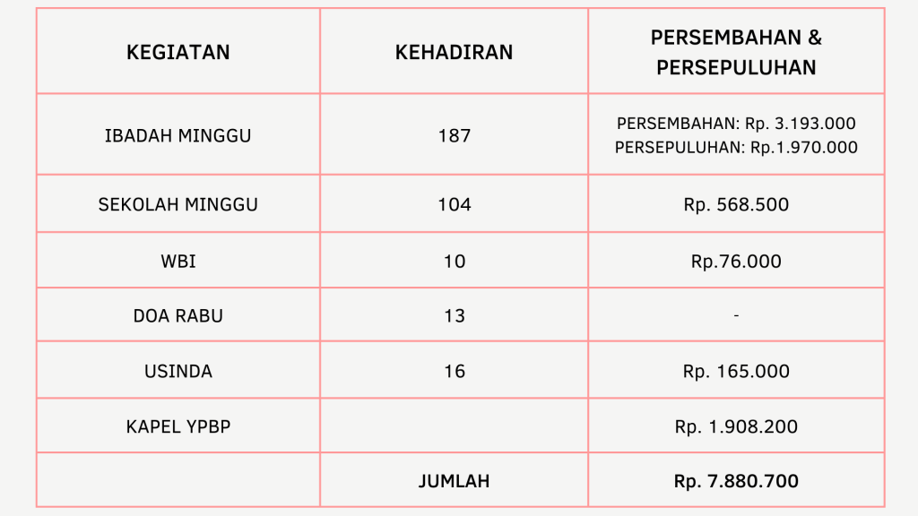 - Penyerahan Persembahan: B’rilah Sifat Murah Hati