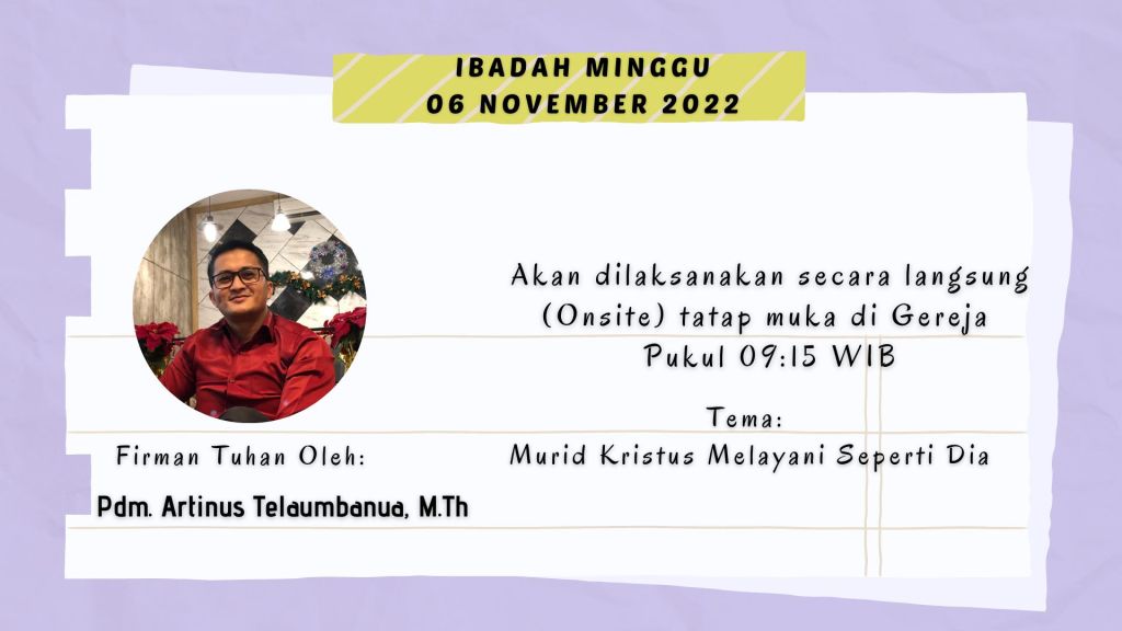 Ibadah Minggu Pagi, 30 Oktober 2022 | Pukul 09.15 WIB |
